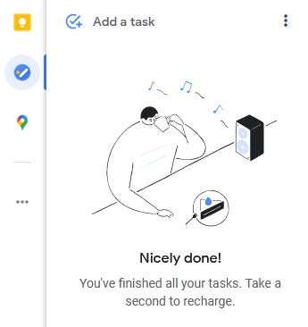 As I mentioned earlier, the best part about Google apps is their integration with each other. Therefore, Google Tasks (task tracking) and Keep (note making) apps feature on the right side of your calendar in a blue and a yellow circle respectively.