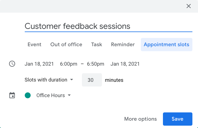 An extension of sorts to the fixing of work hours, you can also create appointment slots for other people to schedule a meeting with you (these features come with a G-Suite account commonly used in workplaces).